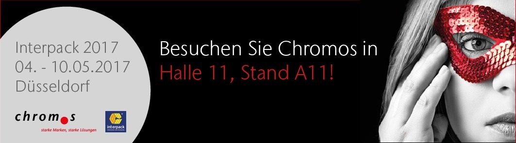 Auf der In­ter­pack 2017 prä­sen­tiert sich die Chro­mos AG als An­bie­ter von in­te­grier­ten Druck­ma­schi­nen- und Ver­pa­ckungs­ma­te­ri­alö­sun­gen für die Bran­chen Food, Non-Food, Phar­ma und wei­ter­ver­ar­bei­ten­den In­dus­tri­en. Chro­mos emp­fängt ihre Kun­den auf dem ei­ge­nen Mes­se­stand Halle 11/A11 und an den Stän­den ihrer Han­dels­part­ner.