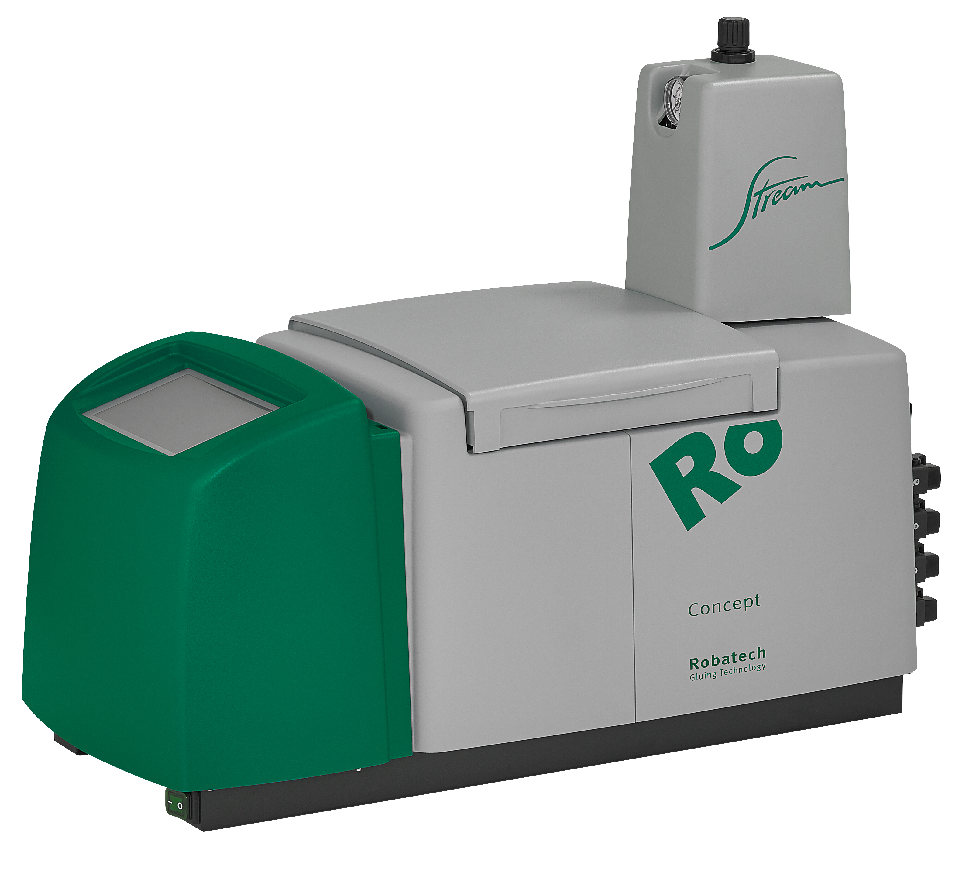 Wie Robatech mitteilt, beruht das neue Schmelzgerät Concept Stream M auf der bewährten Concept-Stream-Linie: Dank der GreenLine-Technologie arbeite das Gerät energieeffizient bei einem sicheren Klebeprozess. Die Melt on Demand ermögliche es, den Klebstoff je nach Bedarf aufzubereiten. Das Gerät habe innerhalb von 16 Minuten die Arbeitstemperatur von 160 Grad Celsius erreicht. Tank und Leimverteiler sind durch eine sogenannte CoolTouch-Ummantelung isoliert. Gegenüber den Geräten der Standard-Concept-Linie führt das den Angaben zufolge zu einer Energieersparnis von über 20 Prozent.