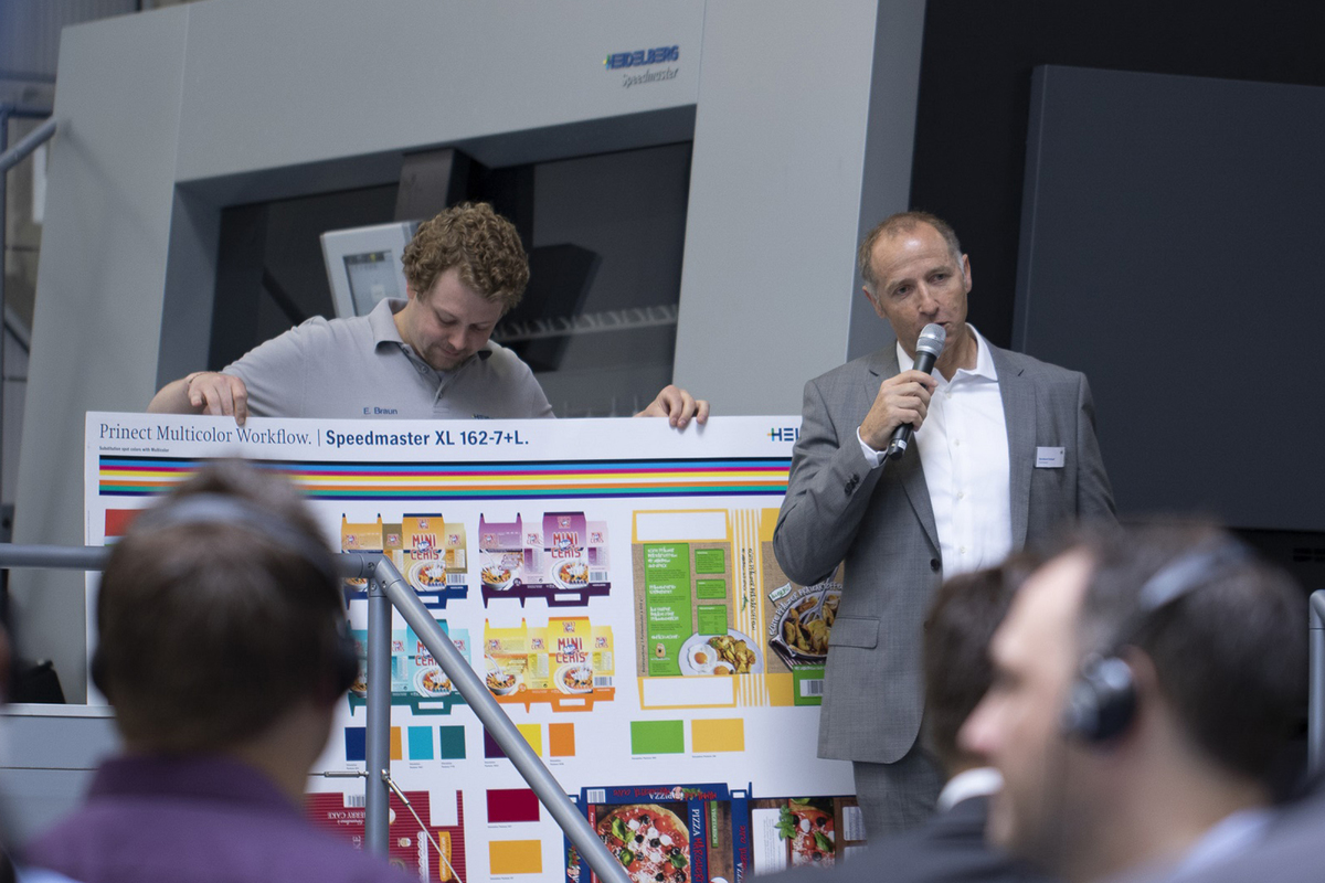 Hei­del­berg nutzt die Mul­ti­co­lor-Tech­no­lo­gie ver­fah­rens­be­dingt auf dem Bo­gen-Inkjet-Sys­tem ­Primefire 106. Auf den Pa­cka­ging Days im Mai prä­sen­tier­te das Un­ter­neh­men die Tech­no­lo­gie auf zwei Bo­gen­off­set­ma­schi­nen, einer Speed­mas­ter XL 162 (kon­ven­tio­nel­le Ein­fär­be­tech­nik) und auf einer Speed­mas­ter XL 75 Ani­co­lor mit Kurz­farb­werk.