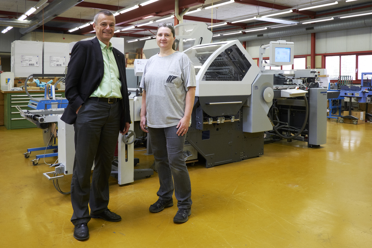 Auf der neuen Falzmaschine werden im Parallel- und im Kreuzbruch alle Anschläge sowie die Falzwalzen und die Messerwellen motorisch verstellt. Gegenüber der Vorgängermaschine, die komplett manuell umgestellt wurde, arbeitet die Bodan AG Druckerei und Verlag deutlich wirtschaftlicher. Der grosse Vorteil einer motorischen Umstellung liege in den schnell ausgeführten Einrichtvorgängen, weil Einstelldaten (bis zu 1500 Jobs) hinterlegt und auf Tastendruck abgerufen werden könnten, sagt der Geschäftsführer Urban Ruckstuhl. «Das zahlt sich in einer hohen Flexibilität aus, indem wir grosse Auflagen unterbrechen können, wenn die Produktion und Lieferung eines kleineren Auftrags kurzfristig gefordert ist.»