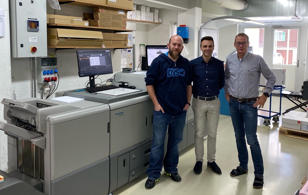 Die Dru­cke­rei Franz Kälin AG, Ein­sie­deln, hat in den Di­gi­tal­druck in­ves­tiert. Neu wird auf einer Ver­sa­fi­re EV und einer Ricoh Cha­ris pro­du­ziert. Beide Ma­schi­nen hat die Hei­del­berg Schweiz AG ge­lie­fert und in­stal­liert. Die Ver­sa­fi­re EV er­setzt eine Li­no­print CV, ein Sys­tem der Vor­gän­ger­ge­ne­ra­ti­on.
