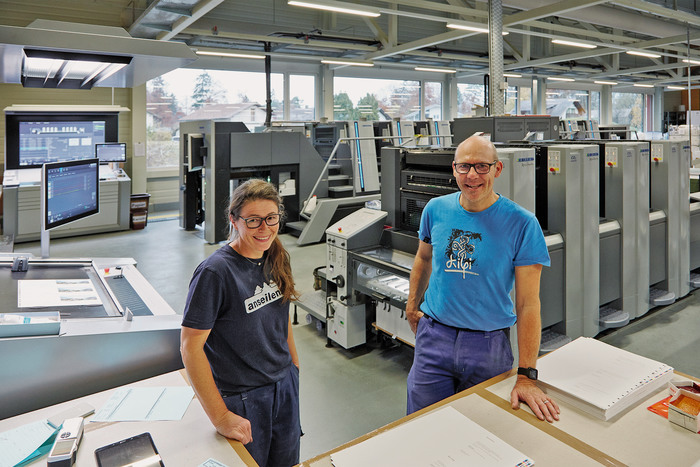 Die Ilg AG Wimmis setzt die Modernisierung ihres Maschinenparks fort. Nachdem im Frühjahr 2021 eine Achtfarbenbogenoffsetmaschine Speedmaster XL 75-8-P in Betrieb gegangen war, folgte im Herbst eine Vierfarbenmaschine Speedmaster SX 52-4. Beide Bogenoffsetsysteme gehören der neuen Generation 2020 an. Sie werden über das Speedmaster Operating System mit der Assistenzsoftware Intellistart 3 bedient.Das Geschäft mit Drucksachen im Format 52×37 Zentimeter sei nach wie vor lukrativ, sagt der Inhaber des Druckereiunternehmens Thomas Ilg. Dank schnell ausgeführter Auftragswechsel würden Auflagen ab rund 1000 Bogen kostengünstiger produziert als im Digitaldruck. «Für Aufträge, bei denen eine Personalisierung nicht verlangt ist, bleibt der Bogenoffset unser bevorzugtes Druckverfahren», hält er fest.Die schnell ausgeführten Auftragswechsel sind im Wesentlichen die Folge einer Prozessabwicklung, die durch das Speedmaster Operating System vorgegeben und nicht durch den Menschen beeinflusst ist. Die systematische Navigation führt die Bedienperson immer auf dem schnellstmöglichen Weg ans Ziel. Rüstvorgänge, die automatisiert sind, werden durch Intellistart 3 selbstständig aktiviert. Die Assistenz-Software löst aufgrund einer Analyse der aufeinanderfolgenden Druckaufträge nur jene Sequenzen aus, die für einen sauberen Auftragswechsel effektiv notwendig sind.Ein wichtiges Merkmal der Speedmaster SX 52 ist für Thomas Ilg deren CO2-neutrale Fabrikation. Es sei eine herausragende Qualität, die schon beim Kauf der Speedmaster XL 75 und eines CtP-Systems Suprasetter A 75 eine zentrale Rolle gespielt habe. Der CtP-Belichter ist mit einem Dual Top Loader ausgerüstet und wird automatisch mit den Druckplattenformaten für beide Druckmaschinen versorgt. Die gesamte Technik ist in die übergeordnete Prinect-Workflow-Steuerung integriert.